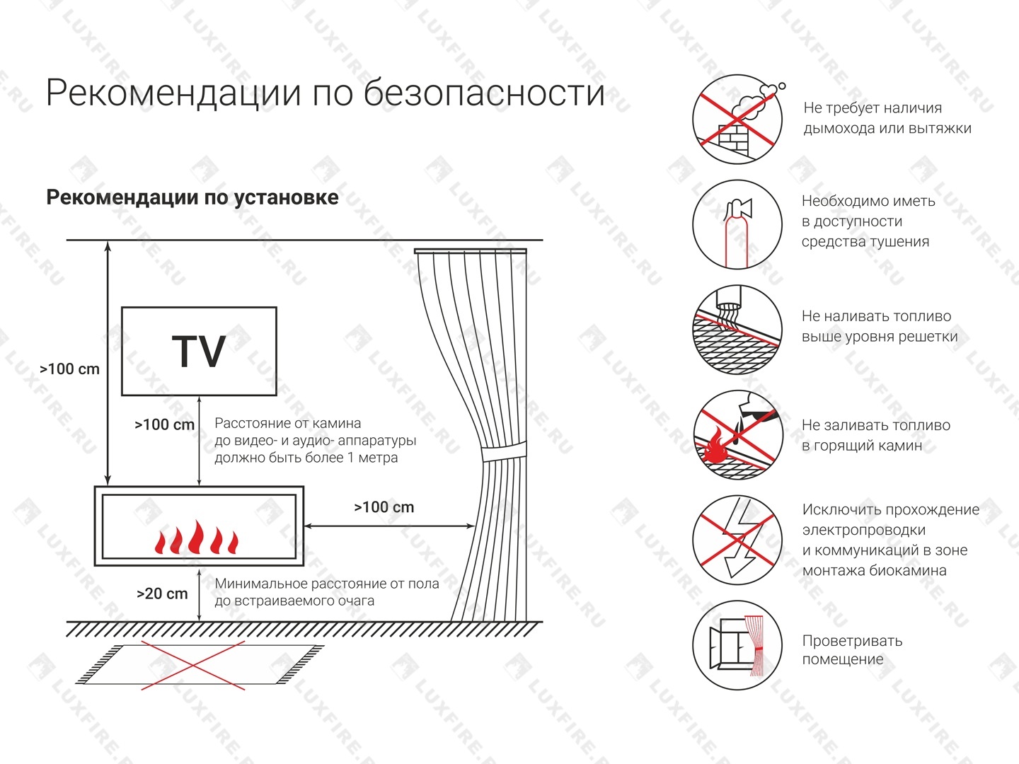 Представляет собой встраиваемую сборную сквозную металлическую конструкцию круглой формы класса S, создающую полузакрытое безопасное пространство для огня с топливным блоком Lux Fire 500 S ограниченную закаленным стеклом в котором горит живой огонь с углом обзора 180 градусов. Универсально подходит для встройки в нишу или подвеса на стену.