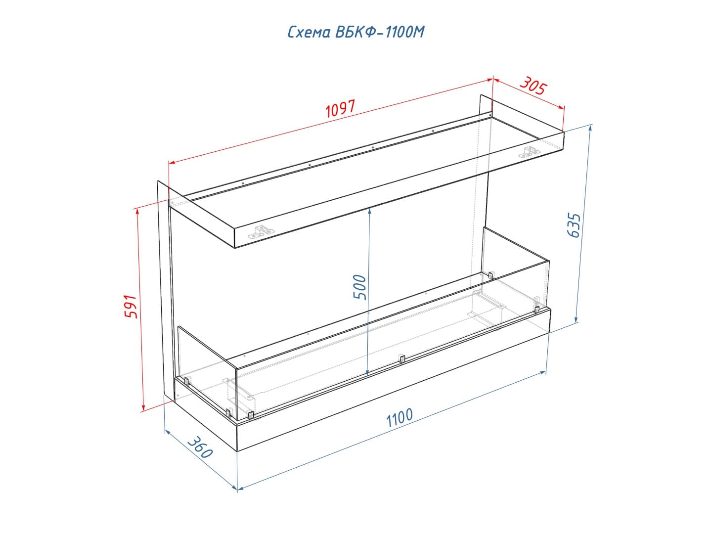 Описание торцевого биокамина Lux Fire Фронтальный 1100 M